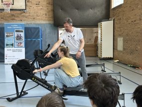 Unter Anleitung der Profis konnten unsere Nachwuchssportler:innen zunächst individuell an ihrer Technik feilen und ein Gefühl für den Rhythmus und die Kraftübertragung entwickeln. Es dauerte nicht lange, bis der Ehrgeiz gepackt wurde: In spannenden Durchgängen wurde fleißig gerudert, bis am Ende die schnellsten Ruderinnen und Ruderer der jeweiligen Jahrgangsstufen ermittelt wurden. Die Stimmung in der Halle war großartig. Teamgeist und sportlicher Einsatz standen dabei an oberster Stelle.