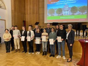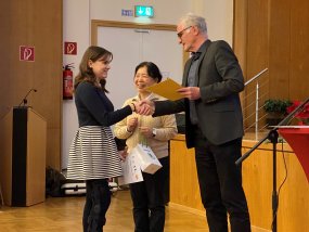 Die beiden Schülerinnen aus der Jahrgangstufe EF bekamen ihre Urkunden von ihrer Chinesisch-Lehrerin Fengshi Yang und Heinz Strohe, dem für Planung und Organisation der Chinesisch-AG Zuständigen. Die feierliche Überreichung der Zertifikate war für unsere Schülerinnen und Schüler der krönende Abschluss der letzten drei Jahre, in denen sie neben den regulären schulischen Verpflichtungen eine komplexe Fremdsprache mit einem fremdartigen Schriftzeichensystem erlernten.