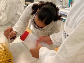 Am Dienstag, den 31. Mai 2022, nahm die Klasse 9a gemeinsam mit ihrer Chemie-Lehrerin Frau Jochims am Lanxess-Labortag in der TH Köln im Chempark in Leverkusen teil. Die Klasse wurde von einem Bus, der von Lanxess zur Verfügung gestellt wurde, zum Schülerlabor gebracht.