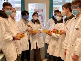 Am Vortag hatte eine Auswahl interessierter Schülerinnen und Schüler aus der 9. Klasse, der EF sowie aus dem Grundkurs der Q1 zusammen mit Frau Köntges und Herrn Pchalek ebenfalls das Labor besucht und spannende Experimente zur Redoxreaktion durchgeführt, wie z.B. den Silberspiegel oder das Chamäleon der Chemie.
