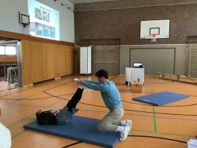 Als Partnerschule des Leistungssports begrüßte das Moltke zusammen mit Vertretern des Netzwerks für Krefelder Leistungssportler*innen am 17.10.2023 Schülerinnen und Schüler aus verschiedenen Krefelder Schulen zu einem Workshop zum Thema „Mobilität“. Als Referent konnte der Sportdirektor des Badminton-Landesverbandes Marcus Busch „Buschi“ gewonnen werden. Durch praxisnahe Beispiele aus dem Bereich Badminton erfuhren die Leistungssportler*innen am eigenen Körper, wie wichtig die Mobilität der Gelenke für jede Sportart ist. Zudem wurden die praktischen Einheiten mit theoretischem Hintergrundwissen verknüpft, so dass vor allem die Sportabiturientinnen und -abiturienten sehr von der Veranstaltung profitierten. „Das war echt gut und vor allem mal eine andere Perspektive auf den Sport“, lobte Jakob Milla aus der Q1.