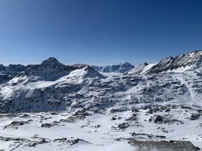 So begann eine circa 13-stündige Fahrt, die mit viel lauter Musik, guter Laune und einer Menge Vorfreude gefüllt war. Nachdem wir ein wenig in der Unterkunft warten mussten, durften wir es uns endlich in unseren Zimmern gemütlich machen. Mit perfekten Wetterprognosen für die nächsten Tage machten wir uns anschließend auf den Weg, die benötigten Ski- und Snowboardmaterialien zu holen. Bereits von unten konnte man wegen des wundervoll sonnigen Wetters die Berge sehen, auf denen wir viele Stunden verbringen würden.