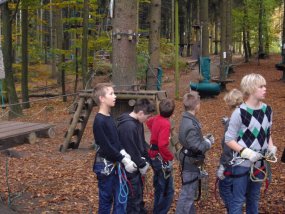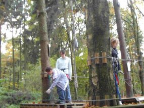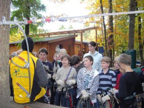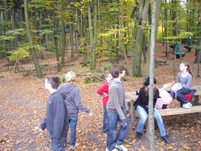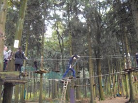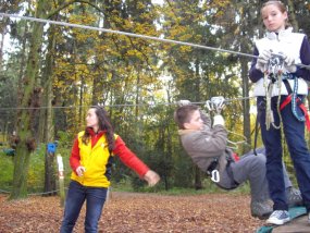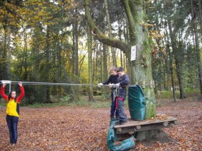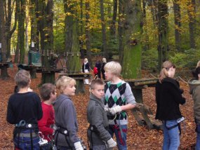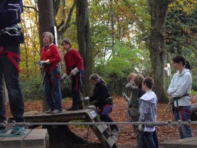 Am 28. Oktober fuhr die Klasse 6b nach der Schule mit einem bestellten Bus in den Kletterwald Süchteln. Nach einer halben Stunde Fahrt mussten die Schüler noch 20 Minuten durch den Wald gehen, bis sie bei dem Kletterwald ankamen. Nach einer Einleitung ging es endlich los! Die Schüler mussten erst einen kleinen Einsteigerparcours vorklettern und durften dann zwischen Fitnessparcours 2 und 3 wählen. Danach konnten sie Abenteuer 1 oder 2 klettern. Einige haben sich auch an den Risikoparcours gewagt. Nach 3 Stunden Klettern ging es dann wieder nach Hause.
