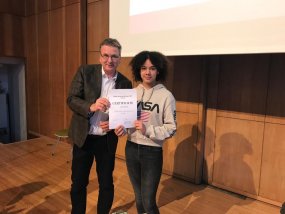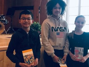 Die Leistungen der Finalisten waren sehr ordentlich und unsere Jury benötigte etwas Zeit, um eine finale Entscheidung zu treffen. Letztlich belegte Mia Wegele den dritten Platz, Amalia Schippmann durfte sich über den zweiten Platz freuen. Matthias Trinh ging als Sieger unserer ersten Reading Challenge hervor. Alle drei erhielten für ihre tollen Leistungen Buchgutscheine.