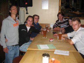 Nachdem man sich im vorigen Jahr zum Schuljahresende zu einem mehr als gelungenen "Herren-Abend" in einem netten Bistro in Bockum getroffen hatte, kam es auch am Montag, dem 4.7.2005, zu einem erneuten Meeting der Fußball-Tipp-Gemeinschaft "MOLTKE n.e.V.", und so trafen sich denn neun Schüler der gegenwärtigen Stufe 12 mit Herrn van Randenborgh, um bei sehr gutem Essen und dem ein oder anderen Weizen (light (!)) natürlich vor allem über Fußball, die bekanntlich wichtigste Nebensache der Welt, zu diskutieren. Aber auch andere Themen - jedenfalls mal n i c h t (ausnahmsweise) die Schule - waren Gegenstand guter Gespräche, und so ging die Zeit um wie im Nu. Selbstverständlich wurde auch für die kommende Spielzeit eine erneute Tipp-Runde unter der Regie von Holger Roos vereinbart, auf dass man sich am Ende des nächsten Schuljahres und - für die meisten - dann auch zum Ende ihrer Schulzeit wieder zu einem geselligen, kommunikativen Abend treffen wird. Bei dieser Gelegenheit wurde Herr v.R. auch gegen Unterstellungen seitens des Kollegen Dyballa ausdrücklich in Schutz genommen, er hätte die Seiten gewechselt und sei mittlerweile Anhänger des 1. FC Cölln, eine solche Perfidie unterstellten ihm nicht einmal die anwesenden Anhänger des Neu-Oberligisten KFC Oedingen !!!