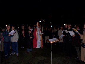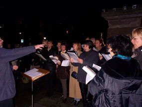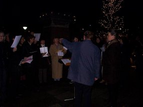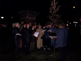 Am 03.12.2002 versetzten wir unter Mitwirkung desSchüler-Lehrer-Eltern-Chores und Mitgliedern des Schulorchesters den Bismarckplatz mit einem "Offenen Singen" in Weihnachtsstimmung.