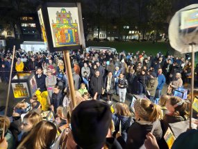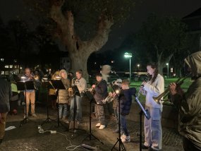 Am 9. November 2023 feierten die Schülerinnen und Schüler des Gymnasiums am Moltkeplatz vor dem Hauptportal das Martinsfest. Warme Getränke, der Martinstütenverkauf der Q2 und das Martinsschauspiel mit Feuer sind dabei natürlich in jedem Jahr ein Muss.