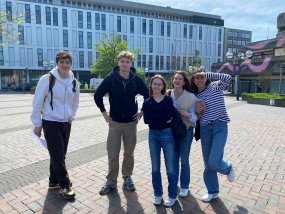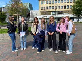 Nach der fünften Stunde brachen wir gemeinsam in die Stadt auf, wo wir uns in kleine Gruppen aufteilten. Unser Ziel war es, unseren neuen Freunden die Stadtmitte von Krefeld zu zeigen und ihnen einige der bekanntesten Sehenswürdigkeiten zu präsentieren. Unsere Stadt-Rallye führte uns zum Kaiser Wilhelm Museum, verschiedenen Cafés und Läden, sowie zum Schwanenmarkt. Einige unserer Austauschschüler waren sehr interessiert an der Geschichte der Stadt und stellten viele Fragen, während andere lieber die Gelegenheit nutzten, um in den Läden zu stöbern.