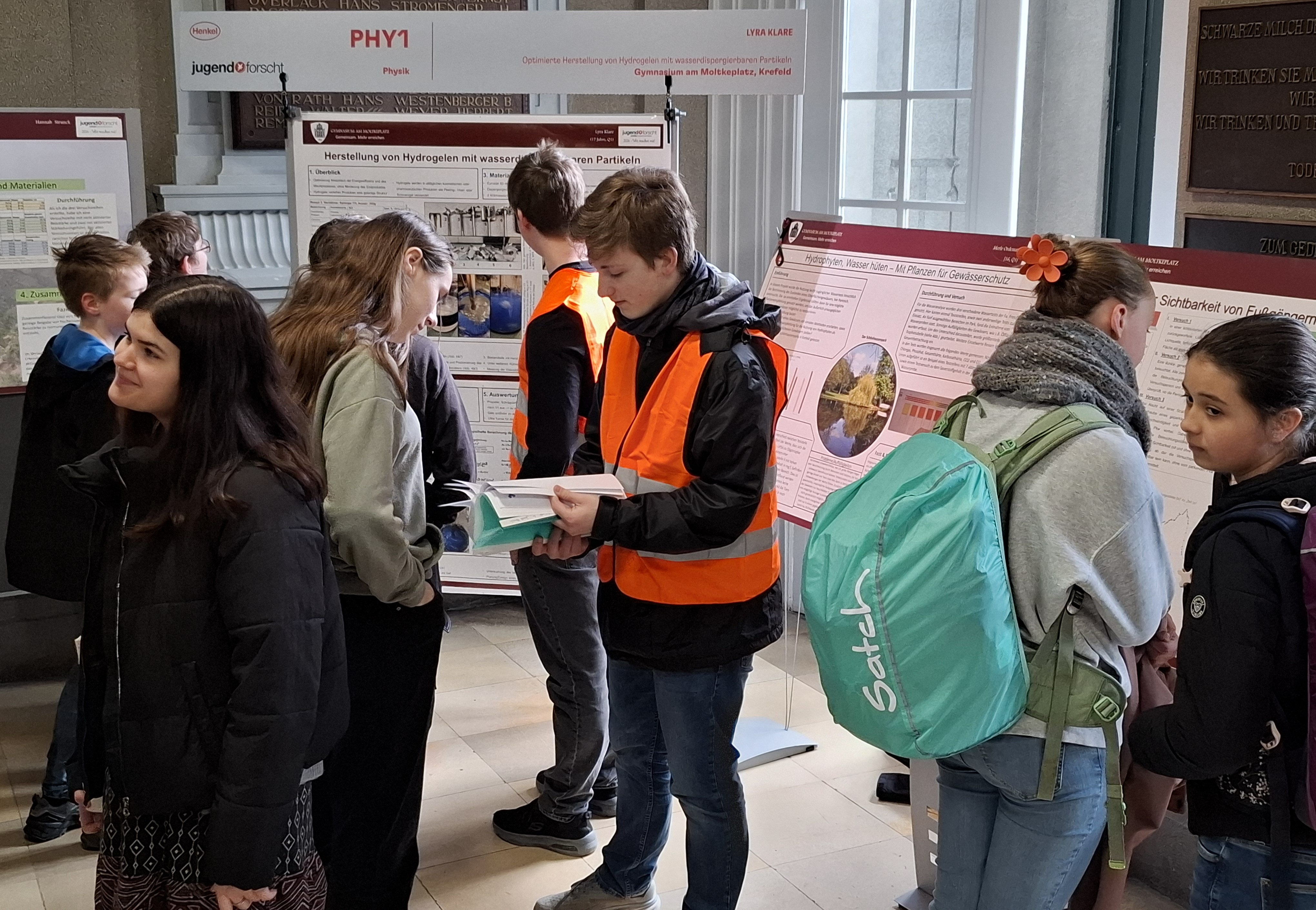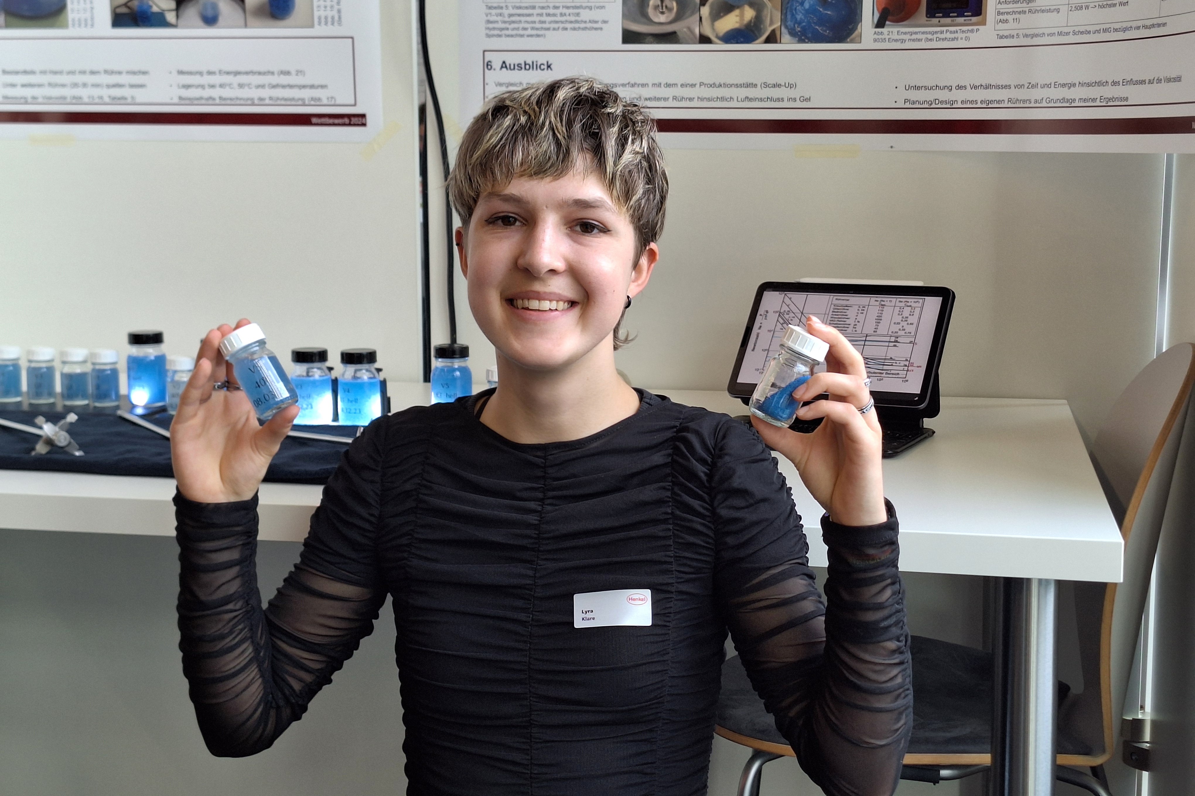 Vom 19. bis 21.03.2024 fand bei der Firma Henkel in Düsseldorf das diesjährige Landesfinale statt, bei dem die Siegerinnen und Sieger der einzelnen Regionalwettbewerbe in den verschiedenen Fachgebieten gegeneinander antraten. Lyra war eine von sieben Teilnehmerinnen und Teilnehmern im Fachbereich Physik und konnte nach zwei spannenden Tagen bei und in der Firma Henkel bei der großen Preisverleihung am 21.03. einen Sonderpreis für ihr Projekt „Herstellung von Hydrogelen mit wasserdispergierbaren Partikeln“ gewinnen. Herzlichen Glückwunsch!