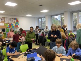 Nach einer kurzen Einleitung von Frau Conze und Frau Steffans durften die Kinder anfangen, ihre eigenen Laternen zu basteln. Schon schnell sah man Fortschritte und vor allem Spaß an der Arbeit. Falls jemand Hilfe brauchte, waren viele hilfsbereite Eltern und Lehrer vor Ort. Nachdem die Laternen fertig ausgestanzt und zusammengesteckt worden waren, wurden die farbenfrohen Moltkemotive hineingeklebt. So waren die wunderschönen Laternen nach etwa einer Stunde fertig und jedes Kind konnte seine einzigartige Laterne mit nach Hause nehmen.