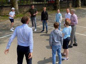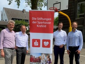 Krefeld, 22.05.2023 - Dank der großzügigen Unterstützung durch die Sparkassen Stiftung „Sport und Umwelt Krefeld“ konnte der Schulhof des Moltke-Gymnasiums neugestaltet werden. Ziel war es, das Gelände natürlicher zu gestalten und gleichzeitig Möglichkeiten für eine sportliche Nutzung zu schaffen. Die Schulgemeinschaft genießt die neue Aufenthaltsqualität bereits seit einigen Wochen. Im heutigen Vor-Ort-Termin konnten sich auch der Vorstand der Sparkassen Stiftung Jochem Dohmen vom Erfolg des Projektes überzeugen.