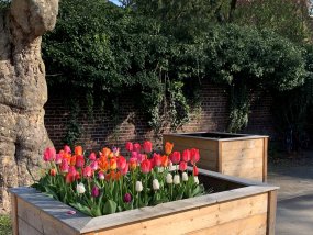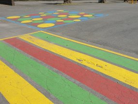 Fußball, Hockey und Basketball – diese drei Sportarten können die SchülerInnen des Moltke-Gymnasiums nun auf ihrem Schulhof ausüben. Dazu wurden die entsprechenden Felder markiert und ein neuer, zweiter Basketball-Korb installiert, der im Unterricht und auch nachmittags genutzt wird. Die Bereiche unter den alten Bäumen wurden durch die Entfernung des Pflasters entsiegelt und mit Tafeln zu grünen Klassenzimmern umgestaltet. Neu angepflanzte Hecken runden die gärtnerische Gestaltung ab, während die Hochbeete mit ihrer neuen Bepflanzung als Anschauungsmaterial für den Biologie-Unterricht genutzt werden.