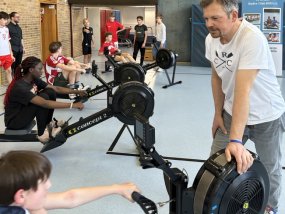 Unter Anleitung der Profis konnten unsere Nachwuchssportler:innen zunächst individuell an ihrer Technik feilen und ein Gefühl für den Rhythmus und die Kraftübertragung entwickeln. Es dauerte nicht lange, bis der Ehrgeiz gepackt wurde: In spannenden Durchgängen wurde fleißig gerudert, bis am Ende die schnellsten Ruderinnen und Ruderer der jeweiligen Jahrgangsstufen ermittelt wurden. Die Stimmung in der Halle war großartig. Teamgeist und sportlicher Einsatz standen dabei an oberster Stelle.