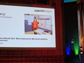 In seinem Projekt widmete sich Qingyan einem Phänomen, das auf den ersten Blick der klassischen Physik zu widersprechen scheint: Ein fallendes Seil verhält sich unter bestimmten Bedingungen anders, als man es intuitiv erwarten würde. Mit großer Sorgfalt, experimentellem Geschick und einem tiefen theoretischen Verständnis gelang es ihm, dieses „Paradoxon“ zu untersuchen und anschaulich zu erklären. Besonders beeindruckte die Jury seine Fähigkeit, komplexe physikalische Zusammenhänge klar darzustellen und experimentell zu untermauern.