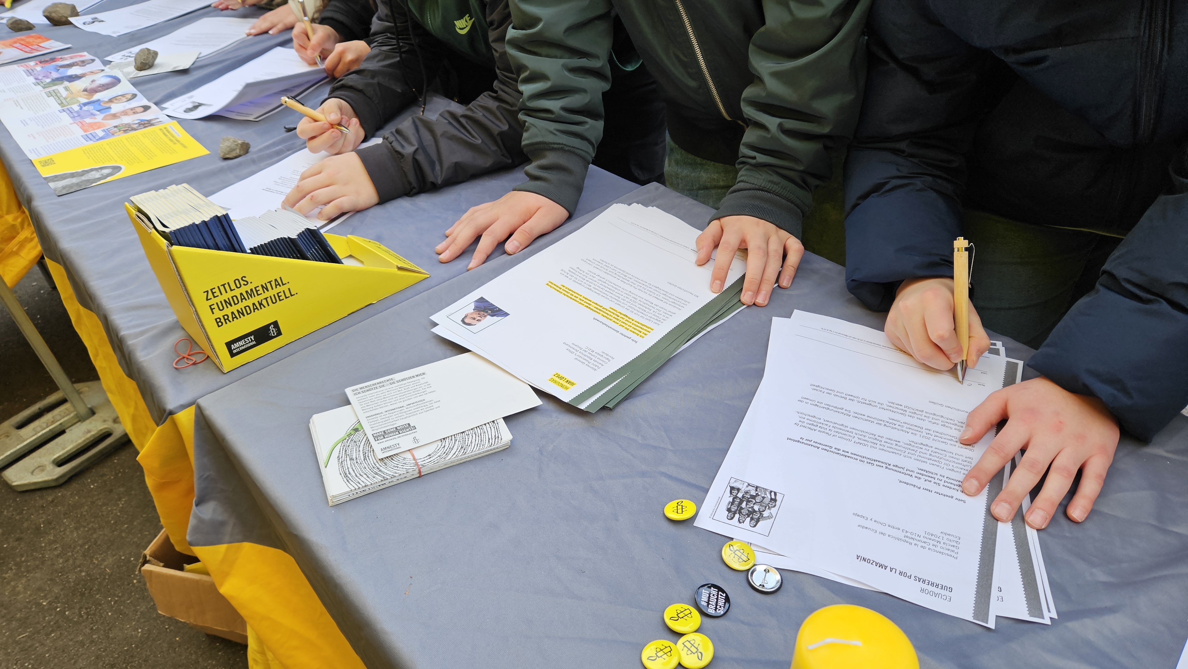 Auch in diesem Jahr waren die Fälle vielseitig und insgesamt konnten 2000 Briefe allein von unserer Schule verschickt werden. Zusätzlich war es möglich, individuelle Postkarten an zu Unrecht Inhaftierte oder die betroffenen Familien zu senden, in denen man ihnen Mut macht und ausdrückt, dass sie nicht allein sind. Bereits in früheren Aktionen konnte Amnesty seine Ziele erreichen und mehrere Gefangene freibekommen. Jedes Jahr freuen wir uns bei dieser Mission mitzuwirken!