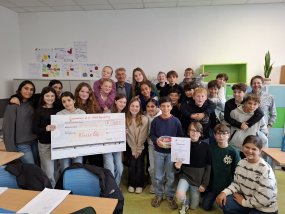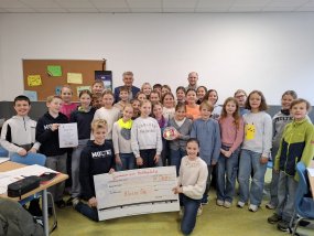 Besonders hervorgetan haben sich erneut die Klassen der unteren Jahrgangs-stufen, allen voran die Klasse 5a (Lorkowski/Meskendahl), die gut 2.500 Euro „erlaufen“ hat (siehe Graphik). Ebenfalls aufs Treppchen im schulinternen Wettbewerb schafften es die Klasse 5c (Yazgan/Artanlar) und die Siegerklasse des letzten Jahres, die 6c (Steffans/Pyschik). Geehrt wurde das besondere Engagement neben etwas Süßem und Urkunden auch mit einem erfreulichen Betrag für die Klassenkasse (siehe Fotos).