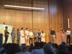 Am Mittwoch, den 13. Juni 2023, war es nach fünf langen Jahren wieder so weit: Der Literaturkurs der Q1 konnte ihr Theaterstück „Der Frieden“, für welches die Schülerinnen und Schüler das gesamte Schuljahr geübt hatten, live in der Aula aufführen.