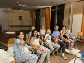 Die „kleinen“ Stars von Morgen begeisterten mit ihrer fröhlichen, sorglosen und leichtlebigen Art nicht nur die Chorleiterinnen Frau kleine Schlarmann und Frau Dederichs, sondern ebenfalls die gesamte Jugendherberge, die mit wunderschönen Klängen und Stimmen beschallt wurde. Dabei bildeten Stücke aus Musicals und Filmen sowie von bekannten Pop-Interpret:innen die Textgrundlage für die Schüler:innen – mit „Mamma Mia“, „Misty Mountains“ oder „Viva la vida“ konnten sie ihre musikalische Vielfalt unter Beweis stellen.