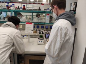 Dort wurden zum Beispiel Experimente zu Säuren und Basen, welche zuvor im Unterricht behandelt worden waren, vorbereitet und von den Schülern durchgeführt. So wurde zum Beispiel der ph-Wert verschiedener Säuren und Laugen mithilfe von Rotkohlsaft als Indikator bestimmt. Später wurde bei einem Titrationsverfahren die Konzentration einer Natronlauge herausgefunden, indem man eine Säure als Maßlösung dosiert hinzugab.