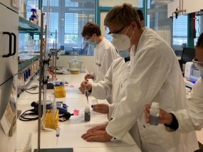 Am Vortag hatte eine Auswahl interessierter Schülerinnen und Schüler aus der 9. Klasse, der EF sowie aus dem Grundkurs der Q1 zusammen mit Frau Köntges und Herrn Pchalek ebenfalls das Labor besucht und spannende Experimente zur Redoxreaktion durchgeführt, wie z.B. den Silberspiegel oder das Chamäleon der Chemie.