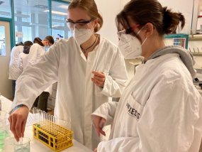 Am Dienstag, den 31. Mai 2022, nahm die Klasse 9a gemeinsam mit ihrer Chemie-Lehrerin Frau Jochims am Lanxess-Labortag in der TH Köln im Chempark in Leverkusen teil. Die Klasse wurde von einem Bus, der von Lanxess zur Verfügung gestellt wurde, zum Schülerlabor gebracht.