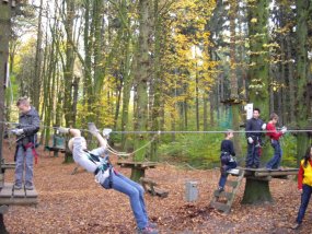 Am 28. Oktober fuhr die Klasse 6b nach der Schule mit einem bestellten Bus in den Kletterwald Süchteln. Nach einer halben Stunde Fahrt mussten die Schüler noch 20 Minuten durch den Wald gehen, bis sie bei dem Kletterwald ankamen. Nach einer Einleitung ging es endlich los! Die Schüler mussten erst einen kleinen Einsteigerparcours vorklettern und durften dann zwischen Fitnessparcours 2 und 3 wählen. Danach konnten sie Abenteuer 1 oder 2 klettern. Einige haben sich auch an den Risikoparcours gewagt. Nach 3 Stunden Klettern ging es dann wieder nach Hause.
