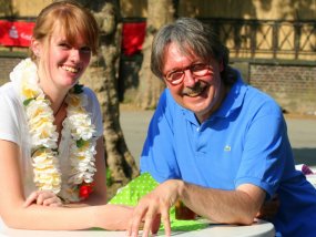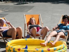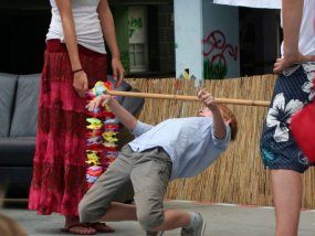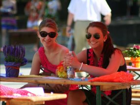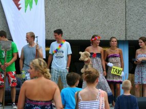 ..lautete das Motto des Sommerfestes 2010, traditionell organisiert von der Stufe 12. Vielfältige Attraktionen wie etwa Lehrerspiele und sportliche Veranstaltungen lockten auch in diesem Jahr zahlreiche Schüler und Besucher an. In einer Talentshow mit kompetenter Jury durften die Schüler des Moltke Gymnasiums ihr Talent einmal so richtig unter Beweis stellen und eine riesige Tombola mit Preisen von Handtaschen bis Drachenflug lud zur Verlosung ein. Ansprechende Dekoration mit Liegestühlen und Wasserbecken, sonnigster Sonnenschein und eine charmante Moderation garantierten ein Sommergefühl auf höchstem Niveau, und das noch vor den Ferien. Den Höhepunkt des Sommerfestes bildeten die legendären Fog Joggers, die mit ihrer Musik den Tag stimmungsvoll ausklingen ließen.
