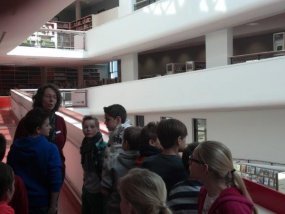 Die Schülerinnen und Schüler der Klasse 6b besuchten am Montagvormittag, begleitet von ihrem Klassenlehrer, Herrn Arlt, und ihrer Geschichtslehrerin, Frau Rasch, sowie der Tutorin Nora, die Mediothek der Stadt Krefeld. Schon auf dem Hinweg herrschte bei strahlendem Sonnenschein gute Stimmung. In der Mediothek angekommen wurde die Klasse nach einem kurzen Einführungsvortrag in zwei Gruppen aufgeteilt. Je eine Gruppe erhielt eine informationsreiche Führung durch die Räumlichkeiten der Mediothek, während die andere Gruppe in der Kinder- und Jugendabteilung ein Quiz über die Mediothek und die unterschiedlichen dort zur Ausleihe verfügbaren Medien bearbeitete. Zum Schluss erhielt jede/r einen „Schnupper-Ausweis“ für die Mediothek, mit dem die Mitgliedschaft für drei Monate kostenlos ist. Am Mittag traf die Klasse wohlbehalten wieder am Schulgebäude ein.
