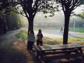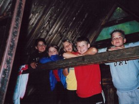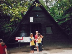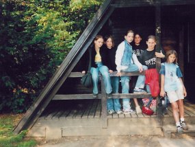 Vom 21. bis 23. August 2000 fand unsere Klasserlfahrt mit unseren Vertrauensschülern Eva und Stefan und unserem Klassenlehrer "Walross" (wer errät, wer das ist? Für Nichteingeweihte: Herr Dyballa) statt. Wir sind nach Hinsbeck in das Hüttendorf des Landessportbundes geradelt --das waren 3 Y2 Stunden pure Anstrengung! Aber die hat sich gelohnt, denn uns erwartete ein kühles Bad im Schwimmbad des Hüttendorfs. Die Hütten waren groß genug für jeweils acht Bewohner und mit Betten, kleinen Schränken? Ti~ich und Stühlen ausgestattet. Oben war ein Speicher für das Gepäck. Das Essen gab es im großen Speisesaal und war naja!