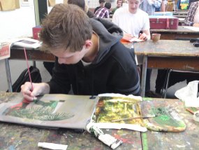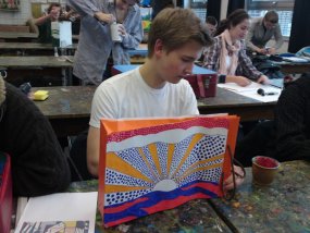 Unsere Schüler/innen des Kunstkurses Stufe 11 haben nun Landschaftsbilder bekannter Maler zum Anlass genommen, Koffer, Rucksäcke oder Taschen zu gestalten.