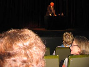 Die Photoserie zeigt den Leistungskurs Deutsch, Stufe 12, (Kurslehrer Herr van Randenborgh) beim Besuch des Düsseldorfer Schauspielhauses am Freitagabend, dem 7.11.2003, wo der "Literaturpapst" Marcel Reich-Ranicki eine einstündige Lesung bezüglich des von ihm neu herausgegebenen Kanons `Deutschsprachige Erzählungen` hielt; Themen seiner Ausführungen waren u.a. seine Beziehung zur Literatur und zum Schauspiel, seine Arbeit als Literaturkritiker und die Frage nach einem Kanon, und zwar als solchem im Allgemeinen wie dem nun von ihm edierten im Besonderen.