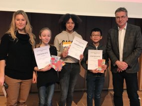 Aus der Klasse 6a hatten sich zu diesem anspruchsvollen Wettbewerb Matthias Trinh und Amalia Schippmann qualifiziert, die 6b schickte Mia Wegele und Tigran Saakow ins Rennen, die 6c entschied sich für Amélie Weiler und Lilly Steeg. Für die 6d waren Utku Kalayci und Isabel Kolfenbach am Start.