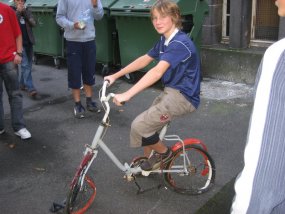 Die Bilder wurden während der Teilnahme der 6b gemacht. Das Plattfahren des Fahrrads aus den 60er Jahren durch den 40 Tonner dürfte besonders eindrucksvoll gewesen sein.