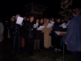 Am 03.12.2002 versetzten wir unter Mitwirkung desSchüler-Lehrer-Eltern-Chores und Mitgliedern des Schulorchesters den Bismarckplatz mit einem "Offenen Singen" in Weihnachtsstimmung.